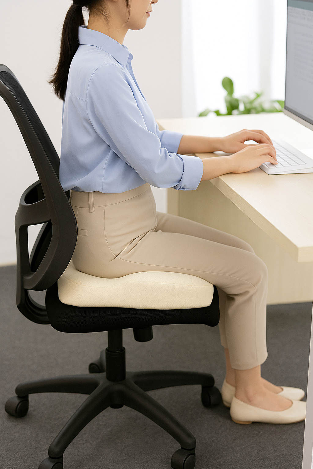 Soft cushioning combines with an ergonomic contour to support office seating. The design promotes balanced posture and ease for hips, tailbone, and lower back, while its lightweight build makes it simple to move between chairs or workspaces. A practical way to maintain lasting comfort at the desk.