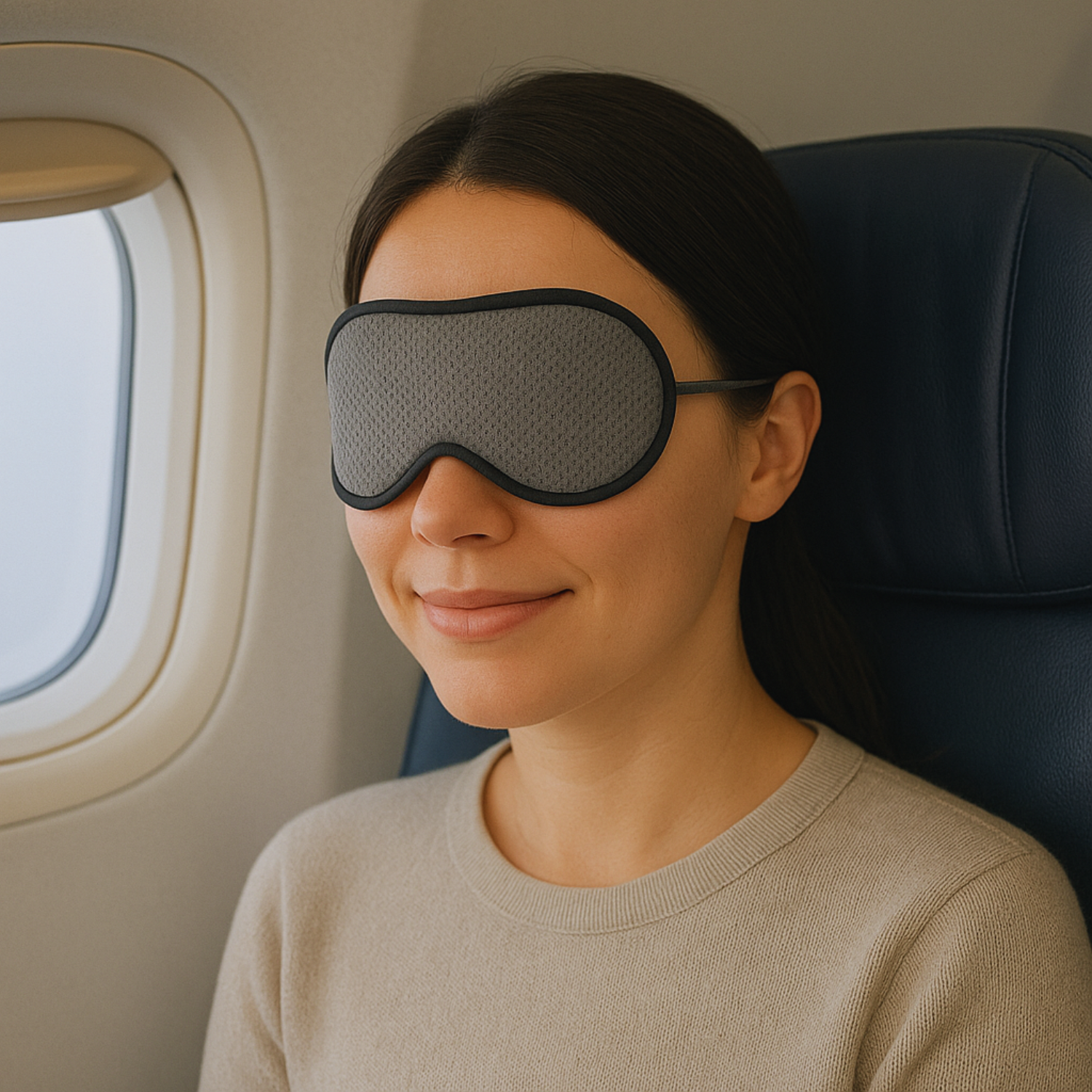 Enjoy a moment of peaceful escape with a travel ready eye mask designed for deep rest above the clouds. Its soft, breathable texture and light blocking contours create a calm, cocoon like environment that supports relaxation and well being during any journey.